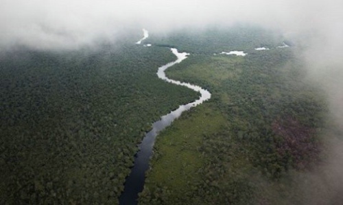 图:一条小河流经赤道省省会姆班达卡(Mbandaka)以南的雨林。