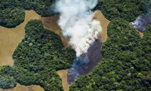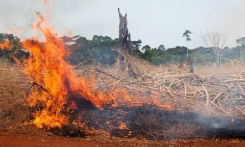 图:在基桑加尼(Kisangani)以东45英里的奥安纳(Onane)地区,为开辟农业用地而清除雨林,砍下来的树桩被烧毁。