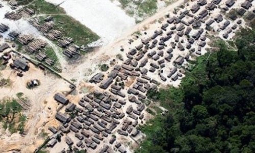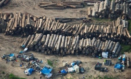 图:鸟瞰刚果河边的贮木场