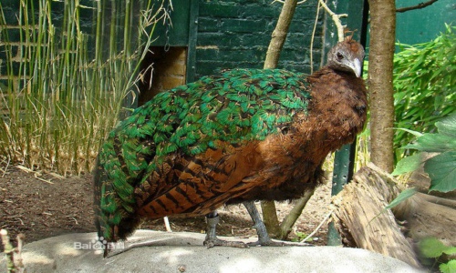 刚 果孔雀是一种难以捉摸的神秘鸟类,由于生活在非洲暗无天日、人畜罕至的热带雨林深处,加之数量稀少,使得人们极少有机会看到它,直到1936年才被著名的美国动物学博士詹姆斯.蔡平正式定名,此前这位博士自1913年起在刚果当地追寻异兽霍加皮的踪迹,在1934年于当地的mbulu族居民那里找到两根刚果孔雀的羽毛,并于翌年捕捉到7只活体标本。刚果孔雀栖息于海拔1200米以下的热带雨林深处,一般在水源附近活动,属于杂食性动物,食物包括种子、树叶、果实、蜥蜴、蛙类以及蟋蟀等昆虫。 刚果孔雀群居生活,每个群体由几个家庭组成。由于其生存环境千万年来一直比较稳定和封闭,所以刚果孔雀的繁殖习性已有所退化,这种鸟并不遵循大多数鸟类一夫多妻的婚姻制度,一雄终生只配一雌,这一习性是其种群人工繁育工作的难题,雄鸟和雌鸟之间的坚固爱情关系是绝对打不破的,因为有记录显示雄鸟在丧偶后经常啄死其它雌鸟,这一点显然不同于它喜欢到处滥情的亚洲亲戚。由于对待爱情忠贞不渝,所以雄鸟身上用于招蜂引蝶的孔雀的特色之处----------漂亮的尾羽也就相应的退化成一小截短毛了。