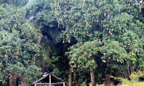 在刚果,芒果可是太多啦,人们都说,刚果人民[吃靠一棵树],就是形容刚果各种果树很多的意思,想吃水果很简单,爬上树去摘好了,还不用花钱买, 这里果树大多为野生,小黑们上树的本领很强,可以轻松地把果子收下来,这包括:油梨;萨夫;芒果等等,很多芒果树树型很大,估计有的应有上百年树龄呢,经俺品尝后,可以确认刚果的芒果味道不错.